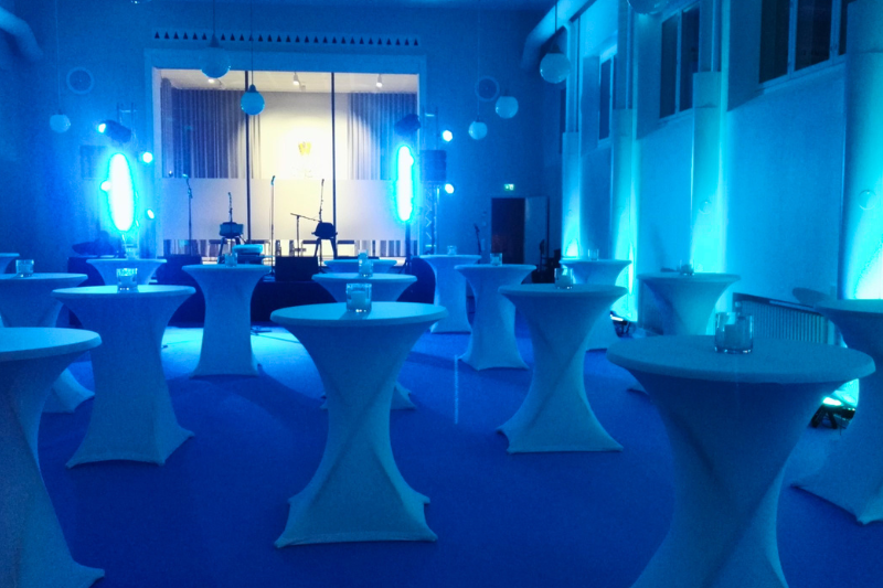 Äänitekniikka, kalusteet ja juhlaan sopiva valaistus. Valaistuksella tilaan saadaan juuri oikeaa tunnelmaa ja värimaailmaa!